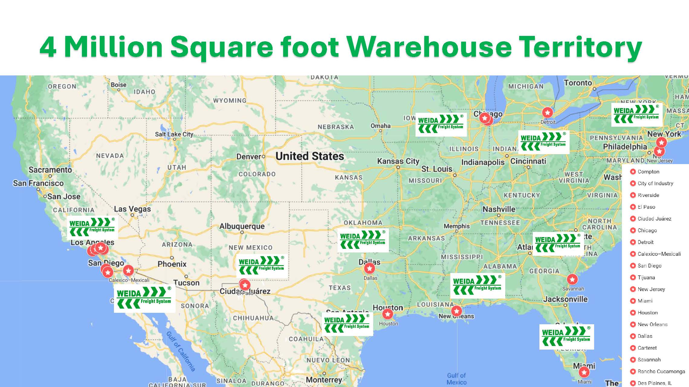 • Chicago (ORD) – Central distribution points with 250,000 square feet for Midwest supply chain efficiency.