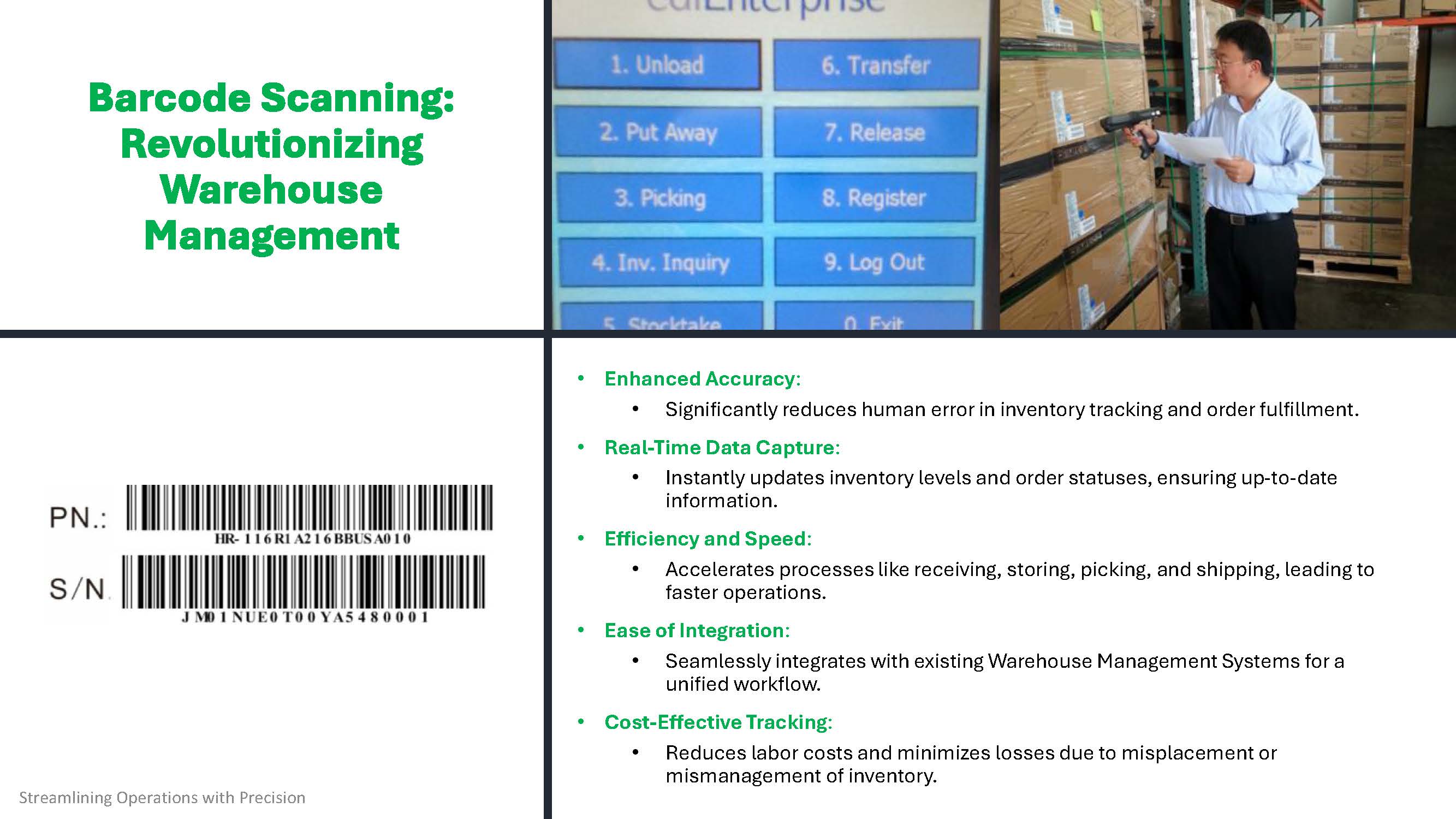 • Reliability & Precision: Real-time tracking, inventory accuracy, and seamless integration with supply chain partners.