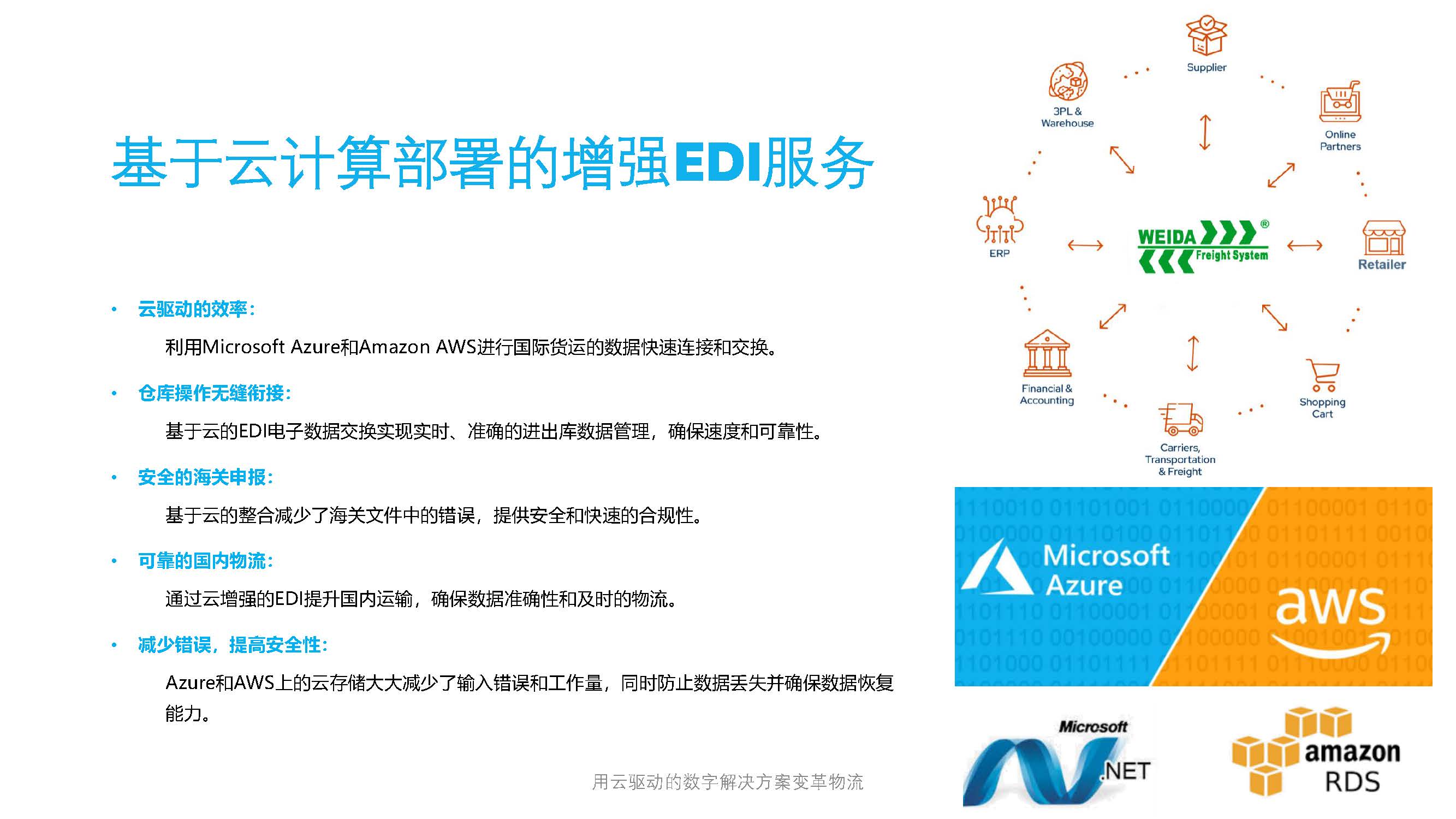 技术驱动运营:依托Microsoft Azure、Amazon AWS和先进的EDI集成,实现快速、精准和可扩展的数据连接。