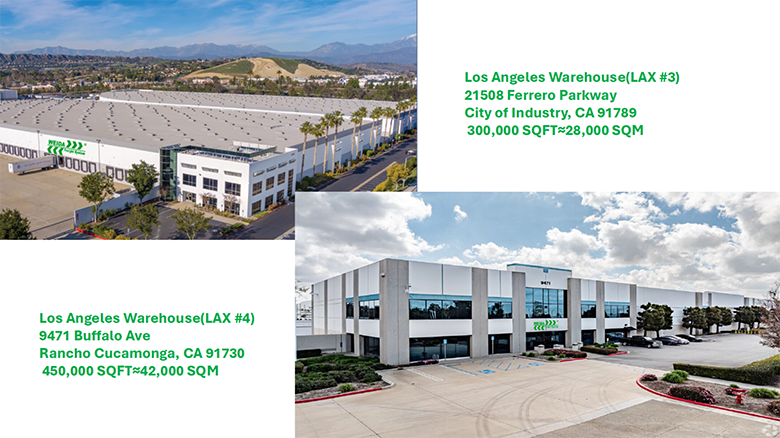 洛杉矶(LAX):四个设施,总面积超过83万平方英尺,支持西海岸分销。