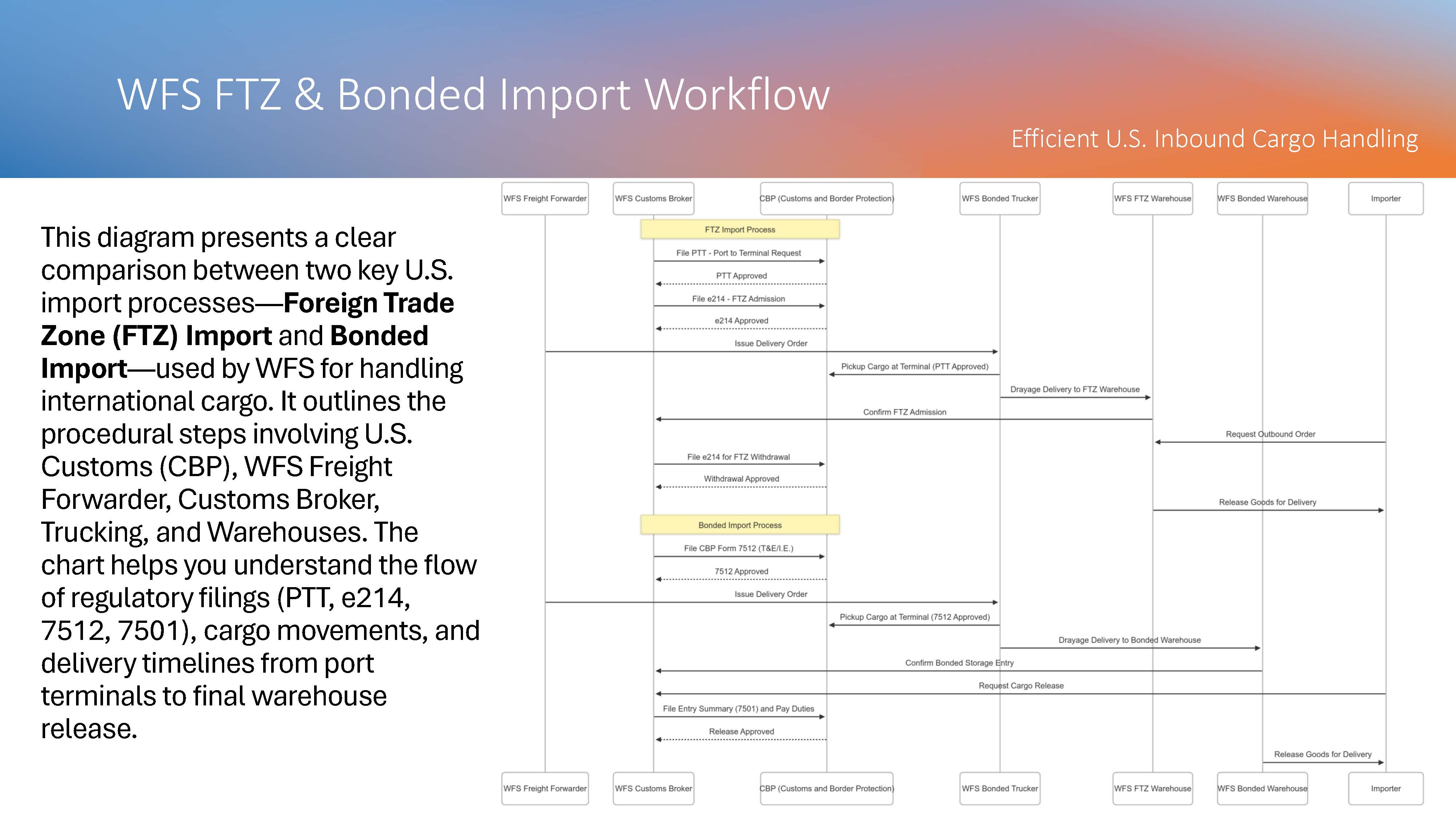 WFS在美国主要物流枢纽运营保税、普通、自由贸易区(FTZ)和集装箱货运站(CFS)仓库,包括: